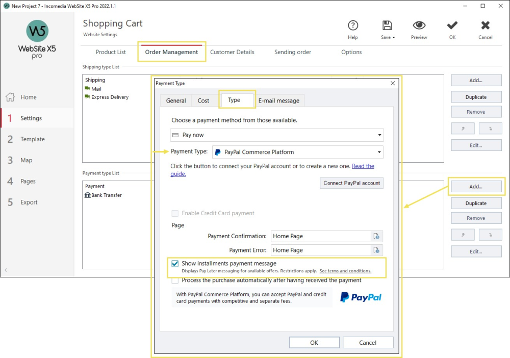 La compatibilidad con la función Compre ahora y pague después de PayPal brinda a los usuarios la posibilidad de ofrecer a los clientes la opción de dividir los pagos en tres o cuatro cuotas. Requiere que los usuarios se encuentren en un país donde el servicio esté activo, lo que actualmente significa EE. UU., Reino Unido, Francia, Alemania y Australia, y Canadá, Italia y España seguirán «pronto». Nuevamente, Incomedia ofrece un completo tutorial en línea que explica cómo usar la función.