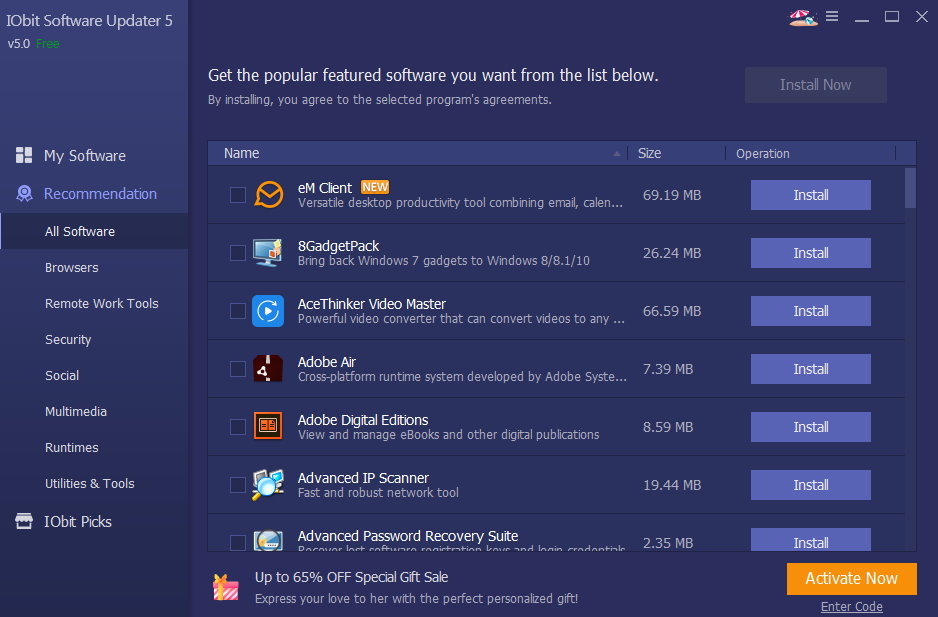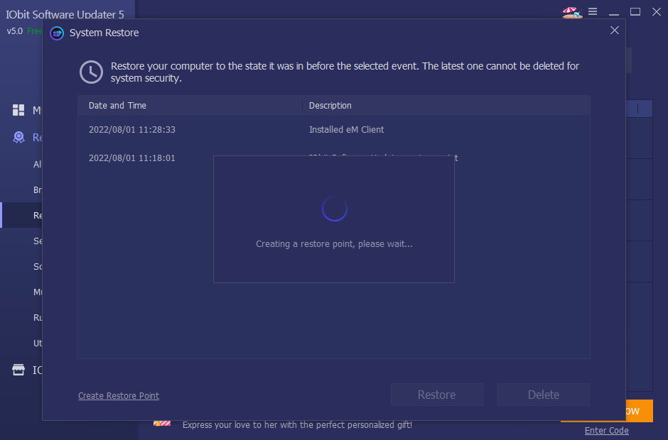 IObit Software Updater no solo se ocupará del proceso de búsqueda y descarga de actualizaciones, sino también de su instalación, lo que incluye permitir que cualquier aplicación individual reinicie el sistema que pueda requerir. Para su tranquilidad, el programa puede crear automáticamente un punto de restauración del sistema en caso de que una actualización resulte problemática. Si algo sale mal, puedes retroceder en el tiempo.