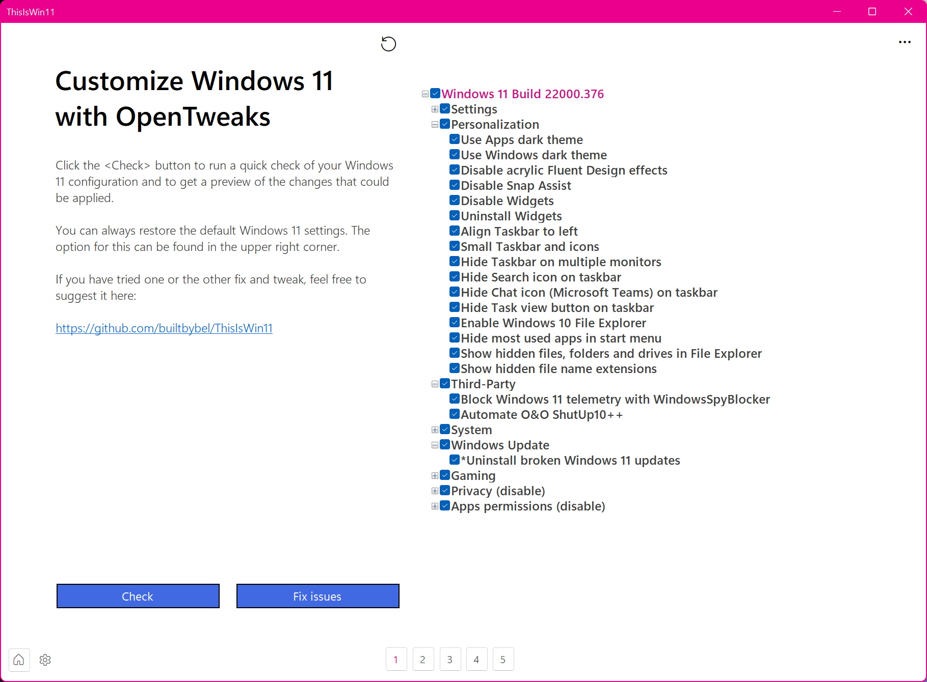 ThisIsWin11 es una aplicación portátil gratuita que sirve para varios propósitos, uno de los cuales es presentar algunas de las características clave de Windows 11. La aplicación comenzó como un proyecto simple para ayudar a las personas a familiarizarse con Windows, pero se ha expandido para ser un retoque. herramienta también. Y la última versión presenta un aspecto completamente nuevo.