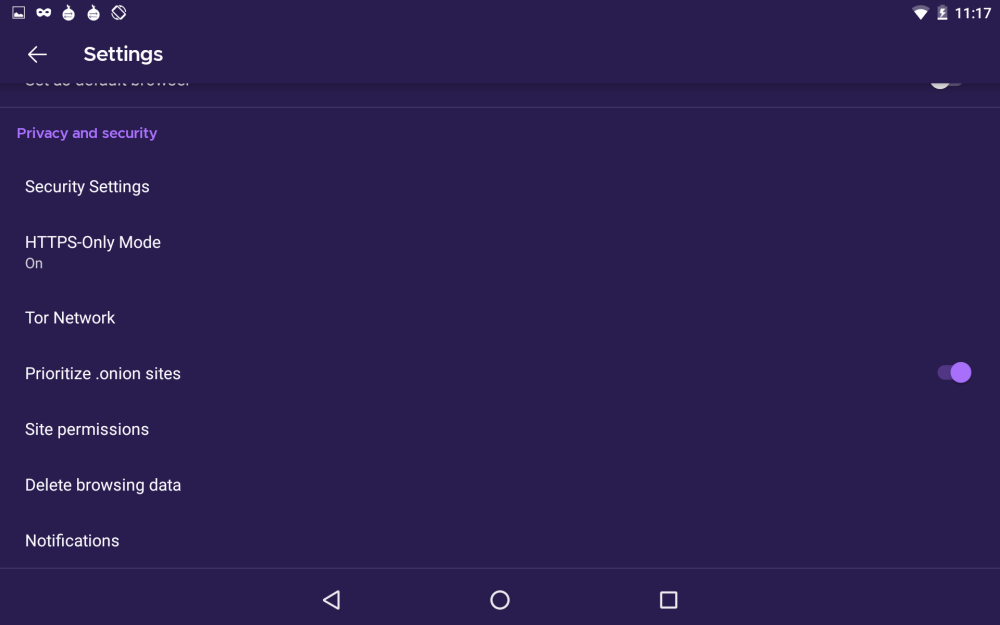 La compilación de Android, que se implementa en Google Play mientras escribimos, ahora se envía con el modo solo HTTPS activado de forma predeterminada para mayor seguridad; esto ahora incluye protección contra los ataques de eliminación de SSL que los usuarios de escritorio han disfrutado desde el lanzamiento de 11.5. Los usuarios también obtienen la capacidad de presionar un interruptor para priorizar los sitios .onion cuando estén disponibles, aunque el botón púrpura ‘.onion disponible’ que se encuentra en la barra de direcciones de la versión de escritorio aún no se ha transferido.