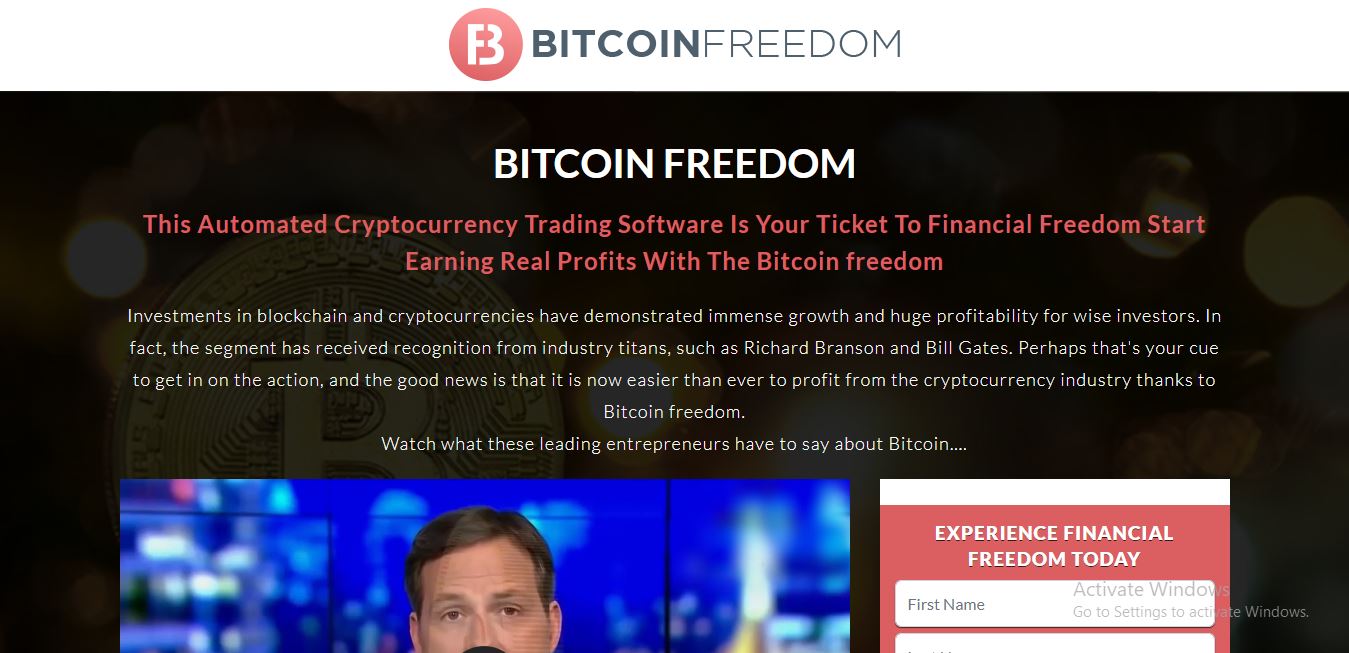 Bitcoin Freedom es una plataforma de comercio de criptomoneda de alto rango que afirma entregar señales de comercio 0,01 segundos más rápido que el mercado, lo que le permite mantenerse por delante de la competencia. El software se cree que han sido desarrollados por un grupo de corredores experimentados con experiencia comercial.