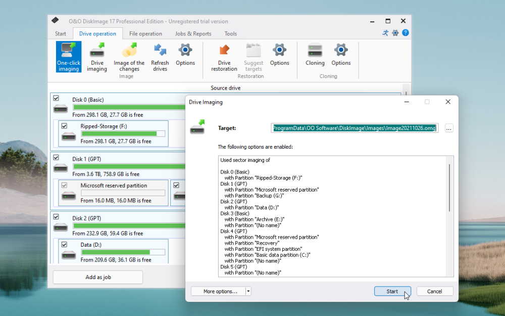 Realice copias de seguridad de archivos individuales o tome imágenes de discos completos con la potente herramienta de copia de seguridad de O&O