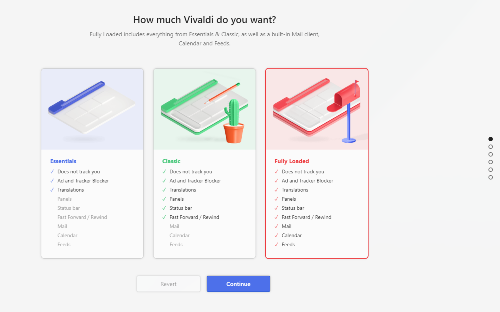 La función de traducción está disponible en todas las plataformas, incluidas Android y Chromebook, pero el nuevo cliente de correo beta, el calendario y el lector de fuentes son exclusivos solo para las versiones de escritorio. También son opcionales para aquellos que están perfectamente contentos con solo un navegador. En el primer lanzamiento, los usuarios encontrarán un nuevo elemento agregado al asistente de incorporación, con una selección de tres tipos de diseño ahora disponibles: Esencial (solo conceptos básicos, incluida la nueva herramienta de traducción), Clásico (agregar paneles, barra de estado y avance/rebobinado rápido) botones) y Totalmente Cargado (agregando Correo, Calendario y Fuentes además de las herramientas Clásicas).