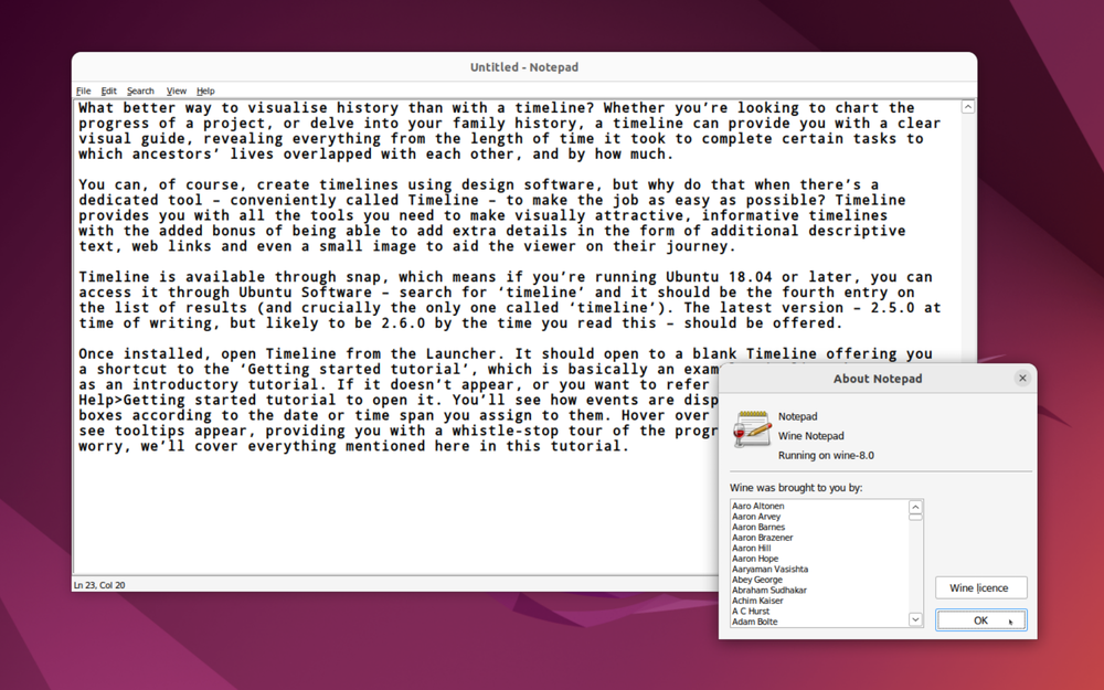 Los usuarios pueden probar Wine rápidamente recreando el editor de texto del Bloc de notas.